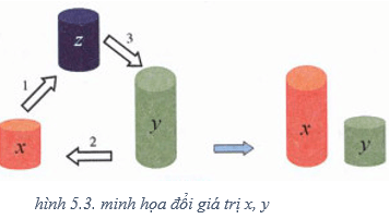 - B3: nếu I ≤ 100, thì quay lại bước 2. Ngược lại, thông báo giá trị SUM và kết thúc thuật toán. Ví dụ 3: Đổi giá trị của 2 biến x và y.,