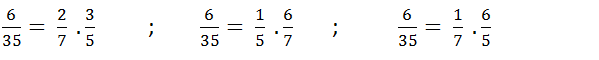 Phân số 6/35 có thể viết dưới dạng tích của hai phân số có tử và mẫu