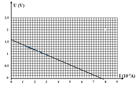 a) Vẽ đồ thị U = f(I) trên giấy kẻ vuông (khổ A4) với tỉ xích thích hợp, hoặc vẽ trên máy vi tính, trong Microsoft Excel.