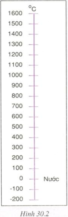 d) Hình 30.2 vẽ một thang nhiệt độ từ -200oC đến 1600oC.