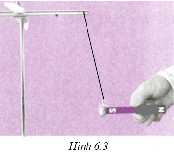 Lực do nam châm tác dụng lên quả nặng trong thí nghiệm hình 6.3 có phương dọc theo trục của thanh nam châm, có chiều hướng từ quả nặng về phía nam châm.