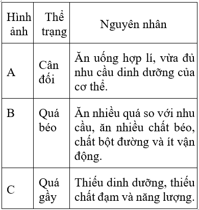 - Quan sát, nhận xét thể trạng của các bạn trong hình 13, nêu nguyên nhân dẫn đến thể trạng như vậy rồi ghi vào bảng dưới đây