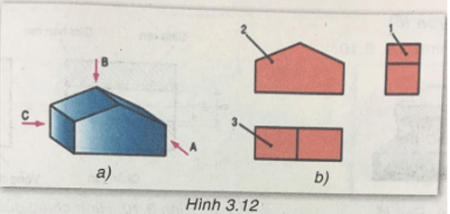 Câu 2 (trang 17 Công Nghệ 8 VNEN tập 1) : Ghi tên gọi các hình chiếu 1, 2, 3 trong hình 3.5 vào bảng 3.1