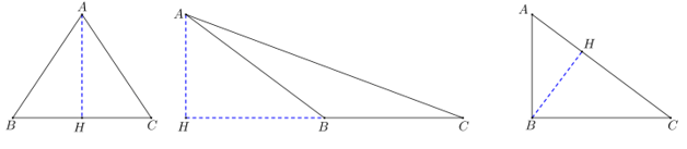 Bài 7: Vẽ đường cao AH của tam giác ABC trong mỗi trường hợp sau: