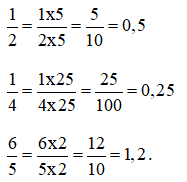 Viết các phân số sau thành số thập phân:
