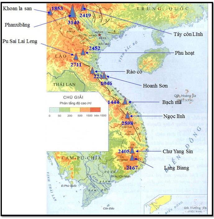 Bài 13: Thực hành: đọc bản đồ địa hình, điền vào lược đồ trống một số dãy núi và đỉnh núi