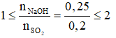 Bài 10 (trang 139 SGK Hóa 10): Hấp thụ hoàn toàn 12,8g SO2 vào 250ml dung dịch NaOH 1M.