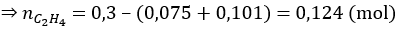 Bài 5 (trang 147 SGK Hóa 11): Dẫn 6,72 lit hỗn hợp khí X gồm propan, etilen và axetilen đi qua dung dịch brom dư, thấy còn 1,68 lít khí không hấp thụ. Nếu dẫn 6,72 lit hỗn hợp khí X trên qua dung dịch AgNO3/NH3 thấy có 24,24 gam kết tủa. Các thể tích khí đo ở đktc.