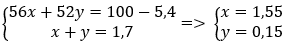 Thành phần % theo khối lượng của hỗn hợp là :
