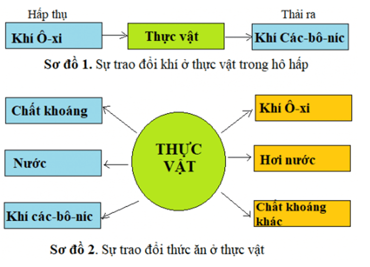 - Thực vật lấy từ môi trường khí ô-xi và thải ra khí các-bô-nic trong quá trình hô hấp