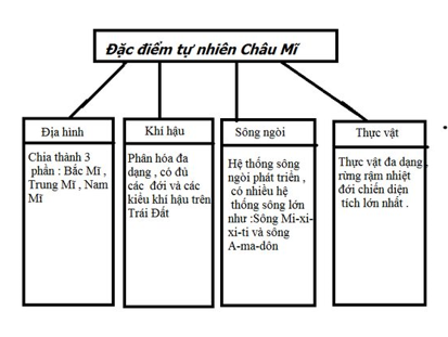 1. (trang 5 Khoa học xã hội 7 Tập 2 VNEN). Hãy lập sơ đồ về đặc điểm tự nhiên ở châu Mĩ.