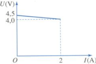 Người ta mắc hai cực của một nguồn điện với một biến trở. Thay đổi điện trở của biến trở, đo hiệu điện thế U giữa hai cực của nguồn điện và cường độ dòng điện I chạy qua mạch người ta vẽ được đồ thị như trên hình 13.3. Từ đó tìm được giá trị của suất điện động E và điện trở trong r của nguồn là: