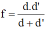 | Lần thí nghiệm | d (mm) | d’(mm) | f (mm) |