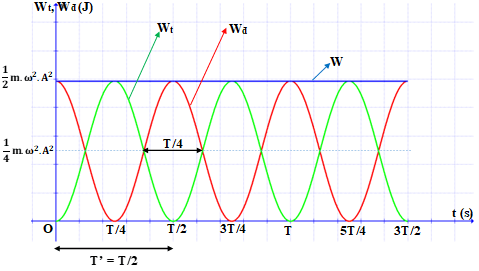 – Giả sử ban đầu động năng cực đại, thế năng bằng không, T là chu kỳ của dao động điều hòa.