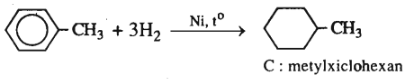 C6H5-CH3 + 2KMnO4 to→ C6H5-COOK + KOH + 2MnO2 + H2O (E: kali benzoat)