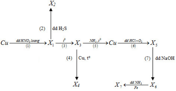 Biết các chất từ X1 đến X7 đều là các hợp chất của đồng. Trong sơ đồ trên số phản ứng oxi hoá - khử là