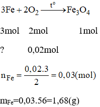 nO2 còn lại tác dụng Fe là: 0,03 – 0,01 = 0,02 mol