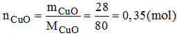 Trong 0,35 mol phân tử CuO có 0,35 mol nguyên tử Cu.
