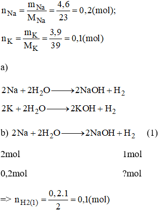 Bài 36.6 trang 49 sách bài tập Hóa 8 (Video giải tại 10:53) Cho một hỗn hợp chứa 4,6g natri và 3,9g kali tác dụng với nước.