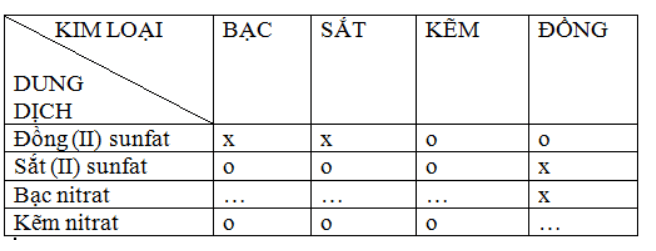 ta có bảng về mối quan hệ giữa một kim loại với một số dung dịch muối:
