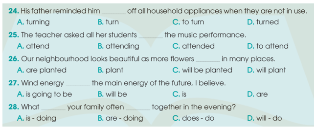 Choose the best answers to complete the following sentences. (Chọn câu trả lời đúng nhất để hoàn thành các câu sau.)