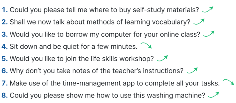 (trang 69 SBT Tiếng Anh 11 Global Success): Read the sentences and mark the intonation using (fall-rise intonation) or (falling intonation). Then practise saying them. (Đọc các câu và đánh dấu ngữ điệu sử dụng (ngữ điệu tăng-giảm) hoặc (ngữ điệu giảm). Sau đó thực hành nói chúng.)