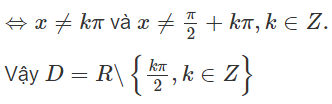 d) tan x và cos x có nghĩa khi sin x ≠ 0 và cos x ≠ 0
