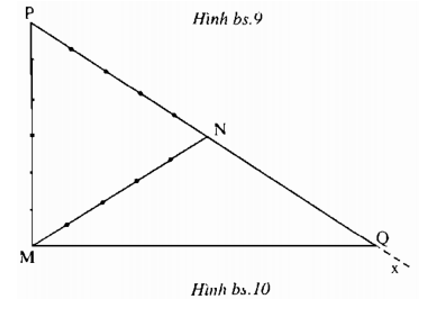 Bài II.10 trang 99 SBT Toán 6 Tập 2: Tam giác MNP có MP = 6cm, MN = PN = 5cm. Góc MNx kề bù với góc MNP. Điểm Q trên tia Nx sao cho NQ = NM (h.bs.10). Khi đó, độ dài của đoạn thẳng PQ bằng