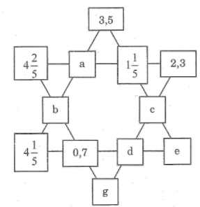Bài 117 trang 32 sách bài tập Toán 6 Tập 2: Biết rằng tổng của mỗi hàng đều bằng 8,3 hãy điền số thích hợp vào các ô thay cho các chữ số a, b, c, d, e, g: