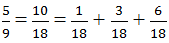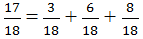 Ta có thể ghép ba miếng bìa 1/18 và 6/18 và 8/18 lại với nhau để được 5/6 hình tròn.