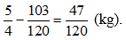 Bài 77 trang 22 sách bài tập Toán 6 Tập 2: Một khay đựng 4 quả chuối, 1 quả táo và 1 quả cam. Biết rằng quả táo nặng 1/8 kg, quả cam nặng 1/3 kg, quả chuối nặng 1/10 kg. Hỏi khay nặng bao nhiêu nếu khối lượng tổng cộng là 5/4 kg?