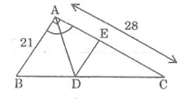 Bài 21 trang 88 sách bài tập Toán 8 Tập 2: Cho tam giác ABC vuông tại A, AB = 21cm, AC = 28cm; đường phân giác góc A cắt BC tại D, đường thắng qua D song song với AB cắt AC tại E.