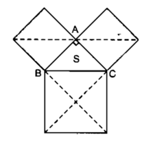 Hình vuông cạnh BC được chia thành bốn hình tam giác vuông cân bằng ΔABC nên có diện tích bằng 4S.