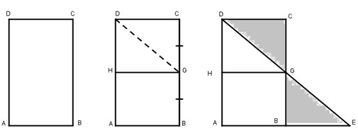 b. Có thể dùng kéo cắt hai lần và chỉ cắt theo đường thằng, chai một hình chữ nhật thành ba mảnh để ghép lại được một tam giác thường hay không ?