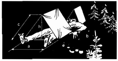 a) Ta có thể xem cái lều là một lăng trụ đứng đáy tam giác cân cạnh bên bằng c, cạnh đáy bằng a, đường cao đáy là h, đường cao hình lăng trụ là b.