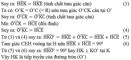 d. Chứng minh rằng HK là tiếp tuyến của đường tròn (O’)