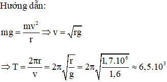 14.2. Gia tốc rơi tự do trên bề mặt của Mặt Trăng là g = 1,6 m/s. Bán kính củí Mặt Trăng là 1,7.106 m. Chu kì của vệ tinh trên quỹ đạo gần Mặt Trăng gầi đúng bằng