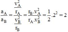 Gia tốc hướng tâm của điểm A và điểm B khác nhau: