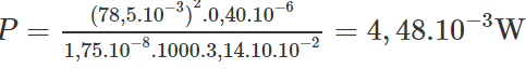 Do đó, công suất toả nhiệt trên ống dây dẫn tính theo công thức :
