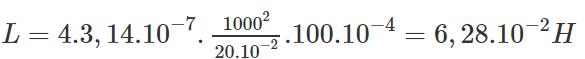 Bài 25.7 trang 65 Sách bài tập Vật Lí 11: Ống dây dẫn hình trụ có lõi chân không, dài 20 cm, gồm 1000 vòng dây, mỗi vòng dây có diện tích 100cm2.