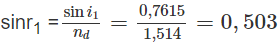 sini1 = n1sinr1 = 1,525.0,5 = 0,7615