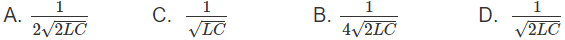 III.9. Đặt điện áp u = U√2cosωt vào hai đầu đoạn mạch AB gồm hai đoạn mạch AN và NB mắc nối tiếp. Đoạn AN gồm biến trở R mắc nối tiếp với cuộn cảm thuần có độ tự cảm L, đoạn NB chỉ có tụ điện với điện dung C. Để điện áp hiệu dụng giữa hai đầu đoạn mạch AN không phụ thuộc R thì tần số góc ω phải bằng