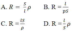 Bài 9 trang 25 sách bài tập Vật Lí 9: Hệ thức nào dưới đây biểu thị mối quan hệ giữa điện trở R của dây dẫn với chiều dài l, tiết diện S của dây dẫn và với điện trở suất ρ của vật liệu làm dây dẫn