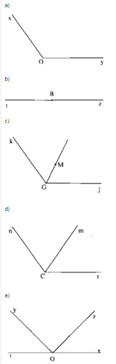 e) Vẽ các góc xOy, yOz, zOt sao cho tia Oz nằm trong góc xOy, tia Oy nằm trong góc zOt và xOt là góc bẹt.