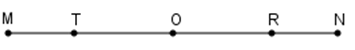 Bài 1.8 (trang 139 Sách bài tập Toán 6 Tập 1): Cho đoạn thẳng MN = 10cm, điểm T nằm giữa hai điểm M, N và MT = 2cm, điểm R nằm giữa hai điểm T, N sao cho TR = 6cm. Gọi O là trung điểm của đoạn thẳng MN. Khi đó độ dài của đoạn thẳng OR bằng