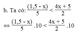 b. Ta có: x + 5 < 7 ⇔ x < 7 – 5 ⇔ x < 2