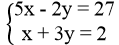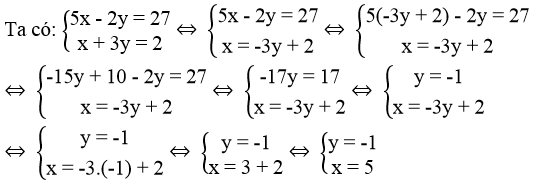 Thay x = 2, y = -5 vào hệ phương trình, ta có: