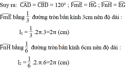*hình b gồm hai nửa đường tròn đường kính 4cm và hai cung 1/6 đường tròn bán kính 8cm