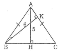 Bài 83 trang 120 Sách bài tập Toán 9 Tập 1: Hãy tìm độ dài cạnh đáy của một tam giác cân, nếu đường cao kẻ xuống đáy có độ dài là 5 và đường cao kẻ xuống cạnh bên có độ dài là 6.