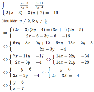 Vậy hệ phương trình đã cho có một nghiệm (x; y) = (7; 6)